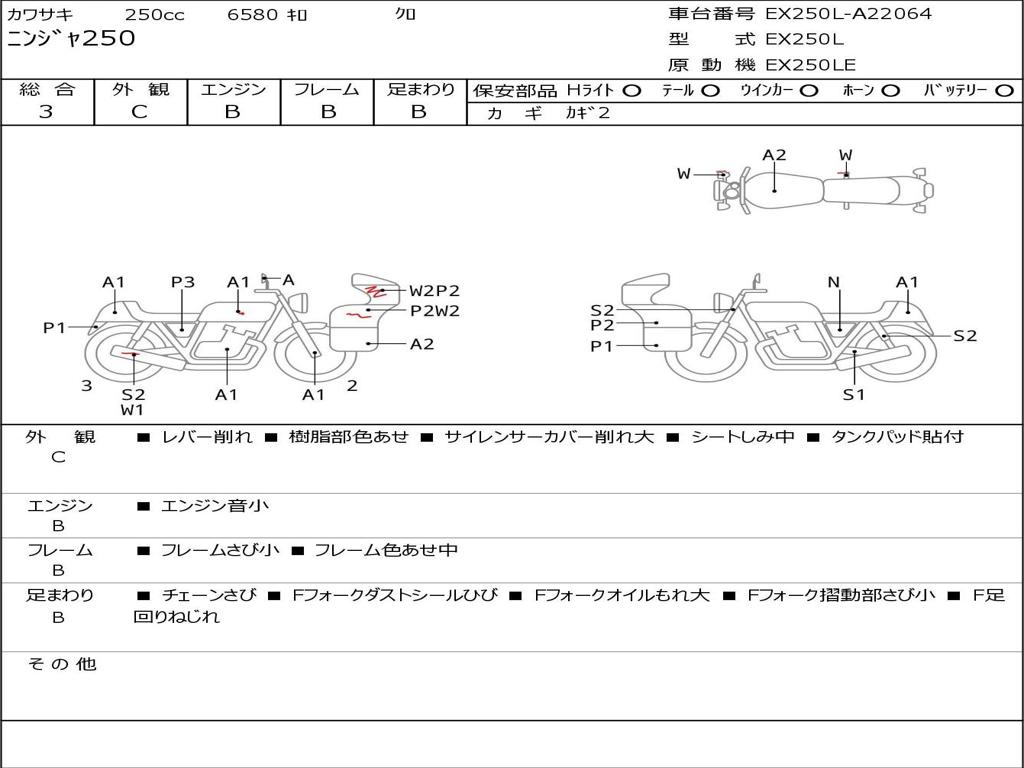 | Номер рамы / VIN | EX250L-A22064 |