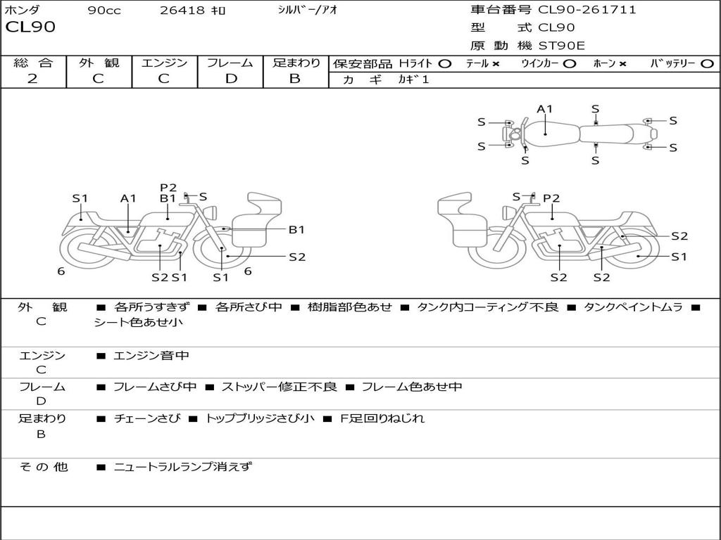 | Номер рамы / VIN | CL90-261711 |