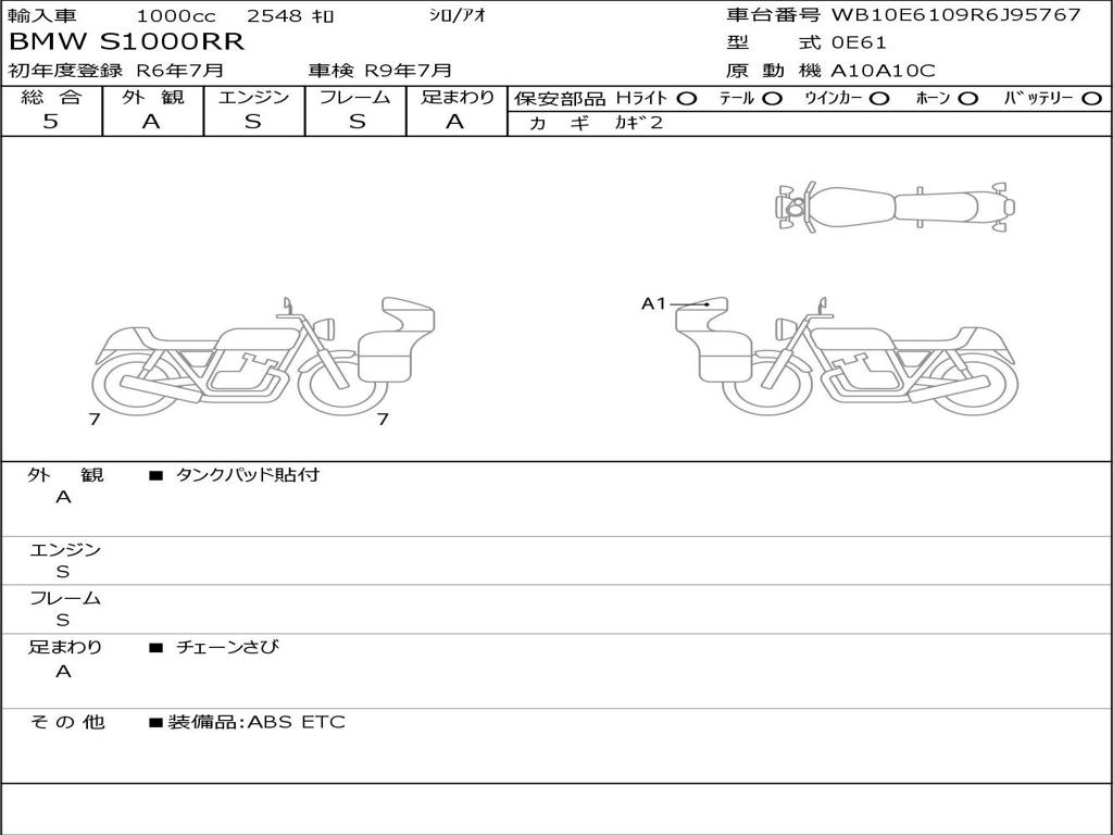 | Номер рамы / VIN | WB10E3109R6J95767 |