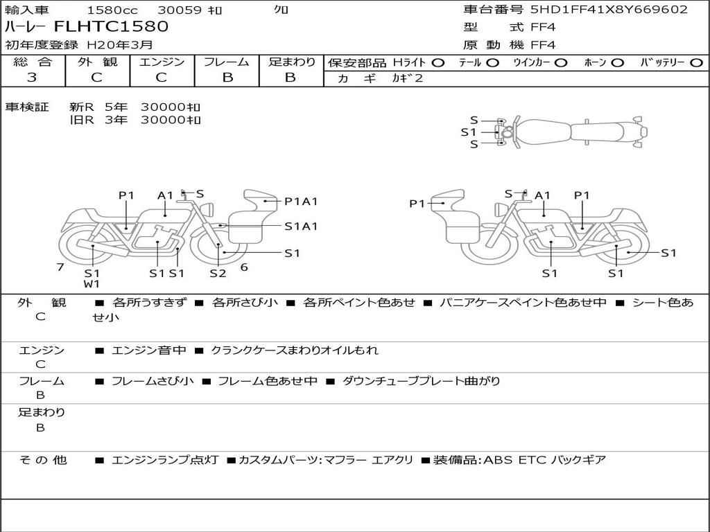 | Номер рамы / VIN | 5HD1FF41X8Y669602 |