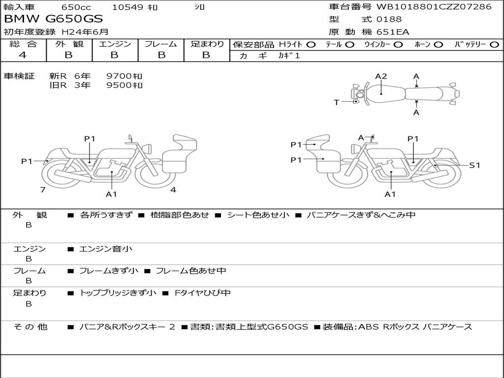 | Номер рамы / VIN | WB1018801CZZ07286 |