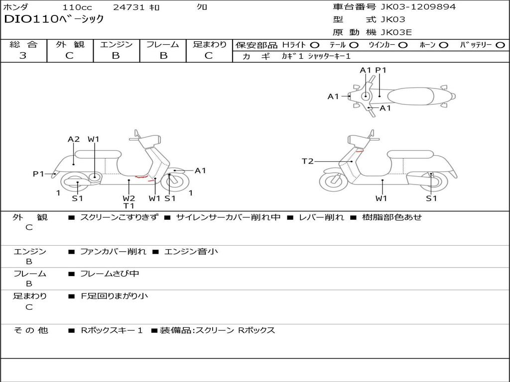 | Номер рамы / VIN | JK03-1209894 |
