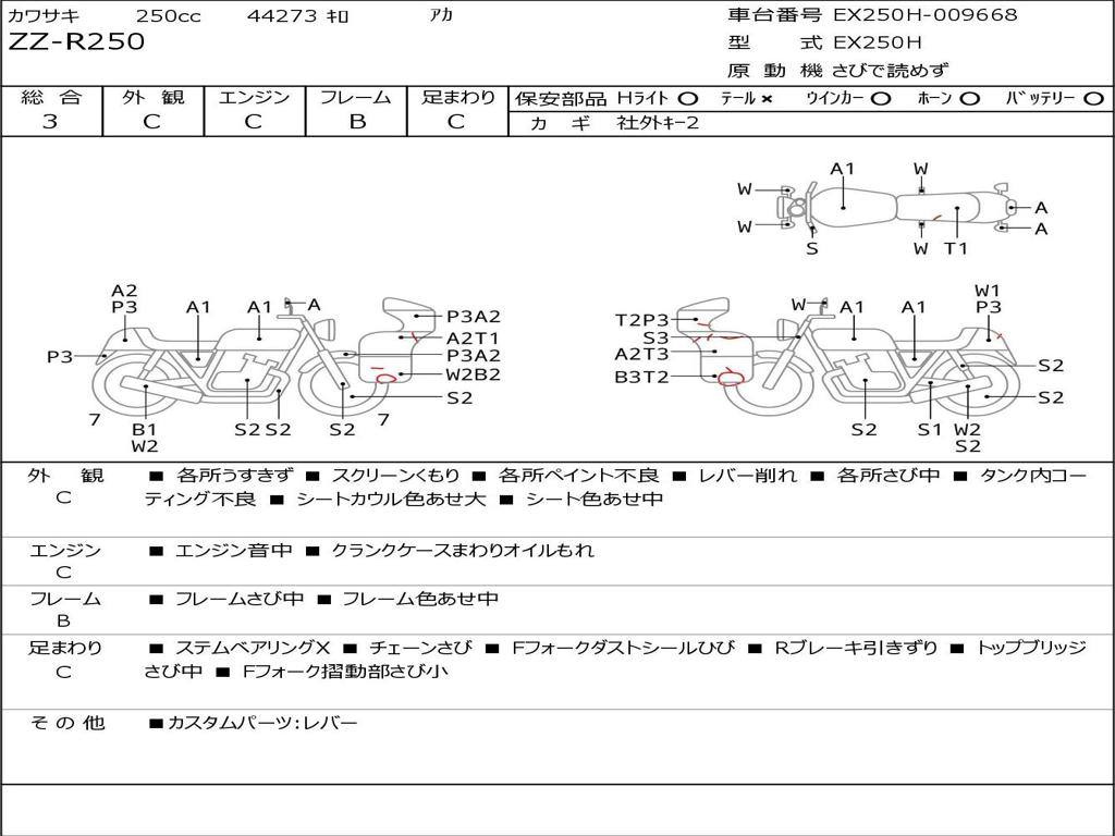 | Номер рамы / VIN | EX250H-009668 |