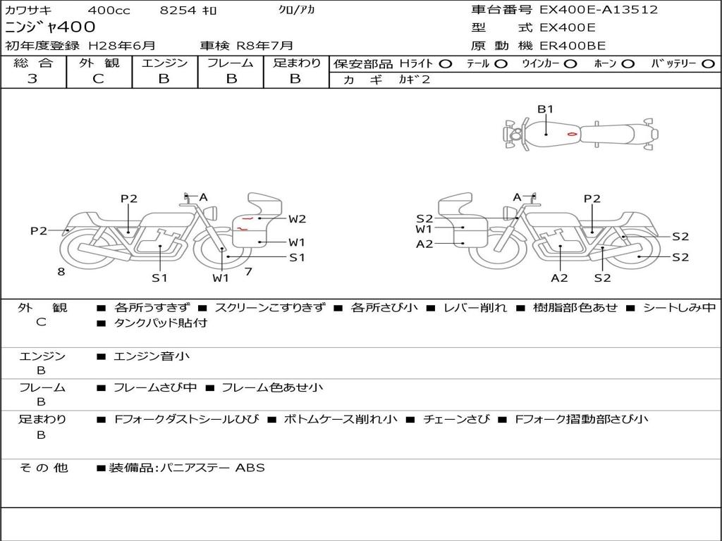 | Номер рамы / VIN | EX400E-A13512 |
