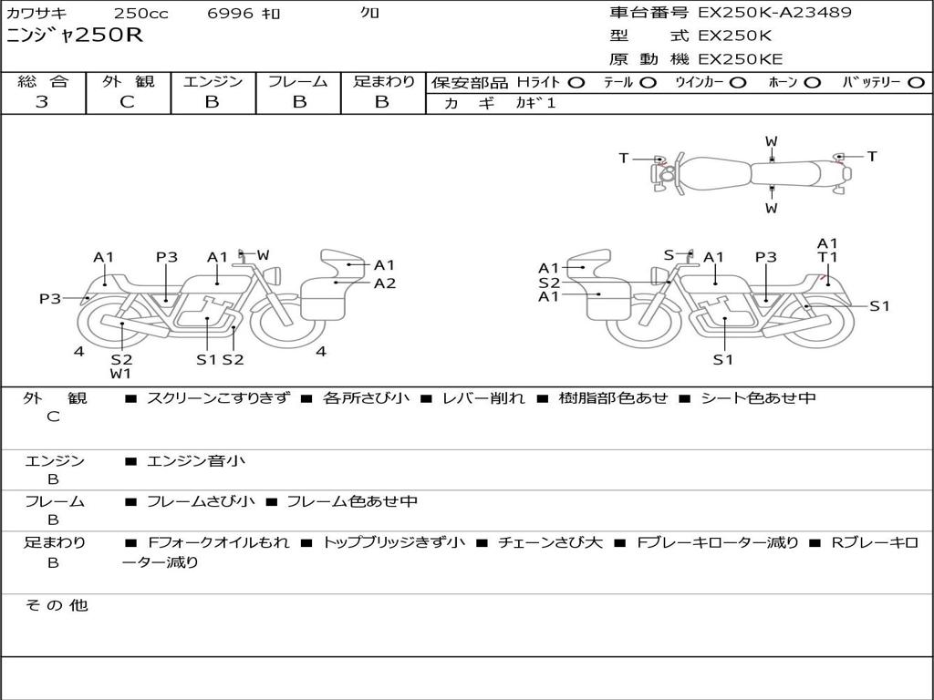 | Номер рамы / VIN | EX250K-A23489 |
