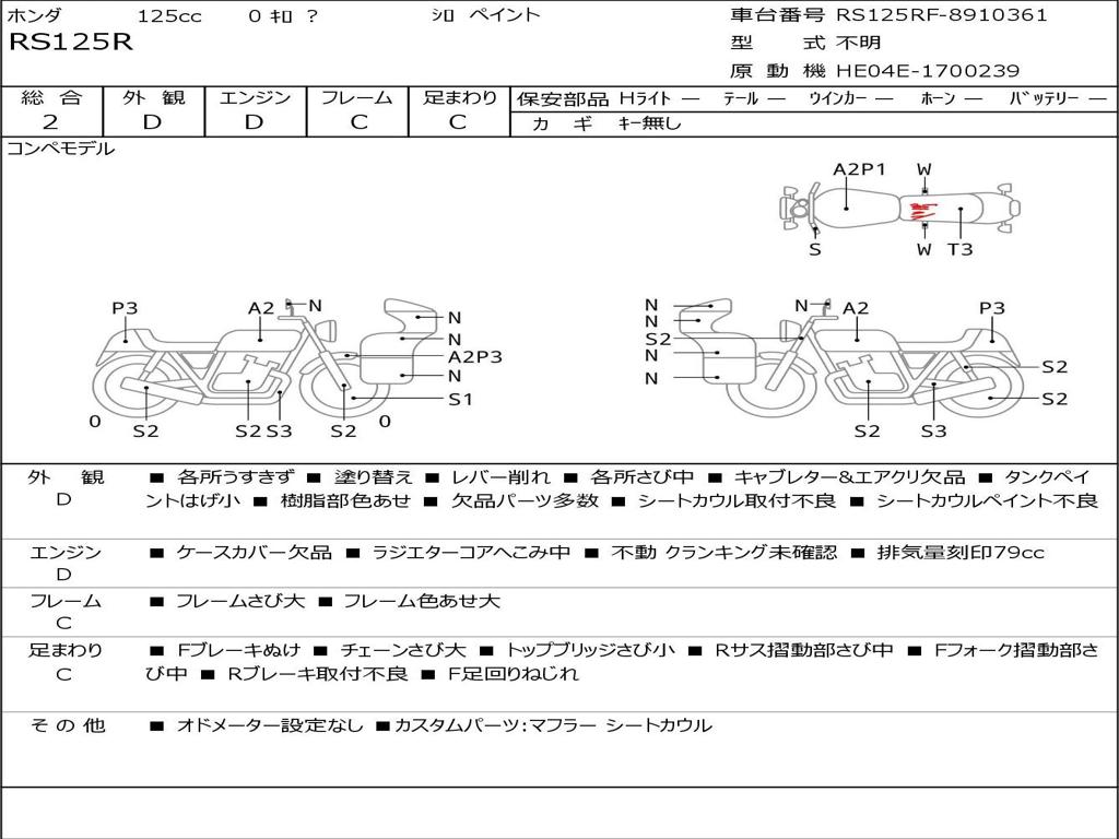 | Номер рамы / VIN | RS125RF-8910361 |