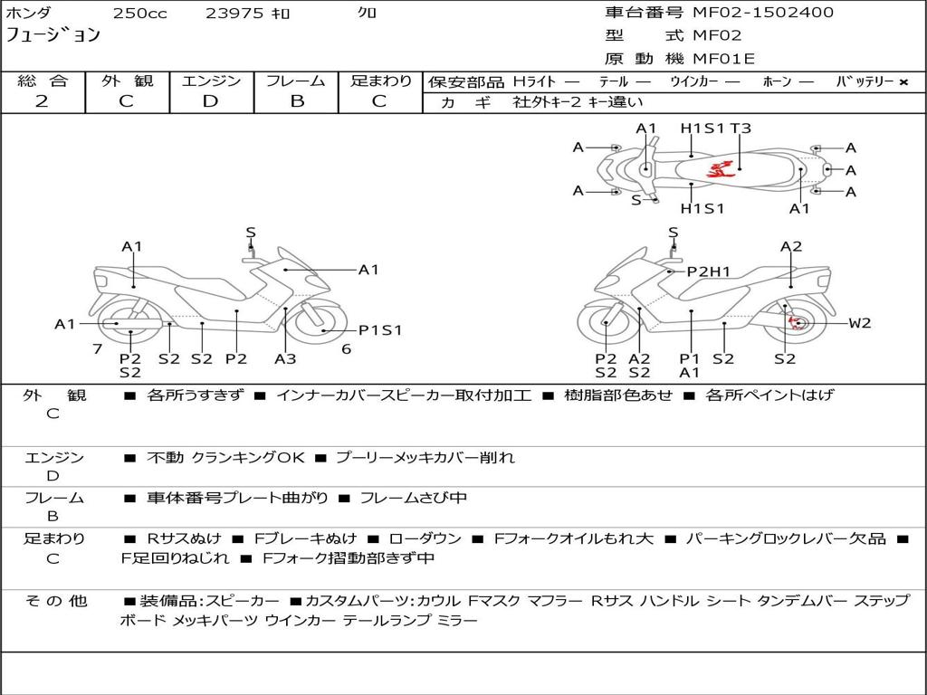 | Номер рамы / VIN | MF02-1502400 |