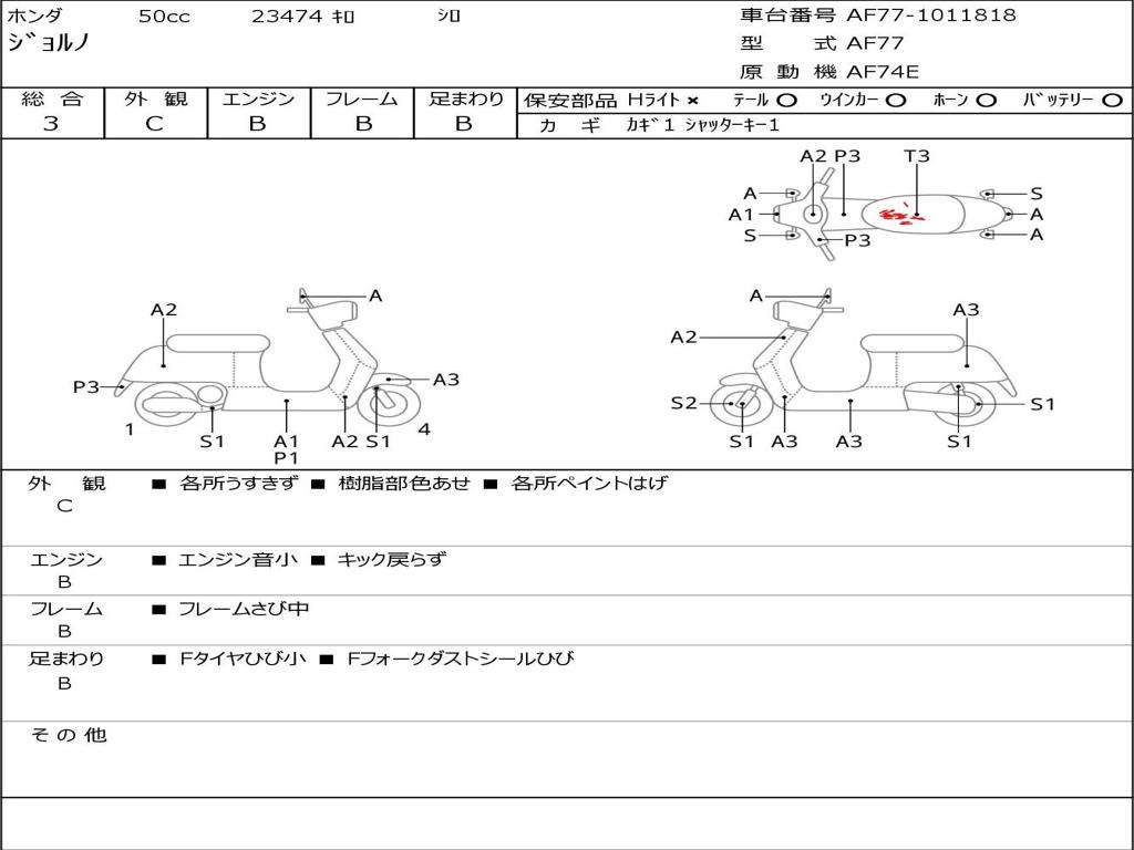 | Номер рамы / VIN | AF77-1011818 |