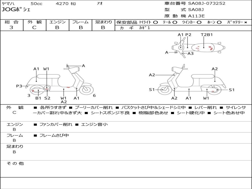 | Номер рамы / VIN | SA08J-073252 |