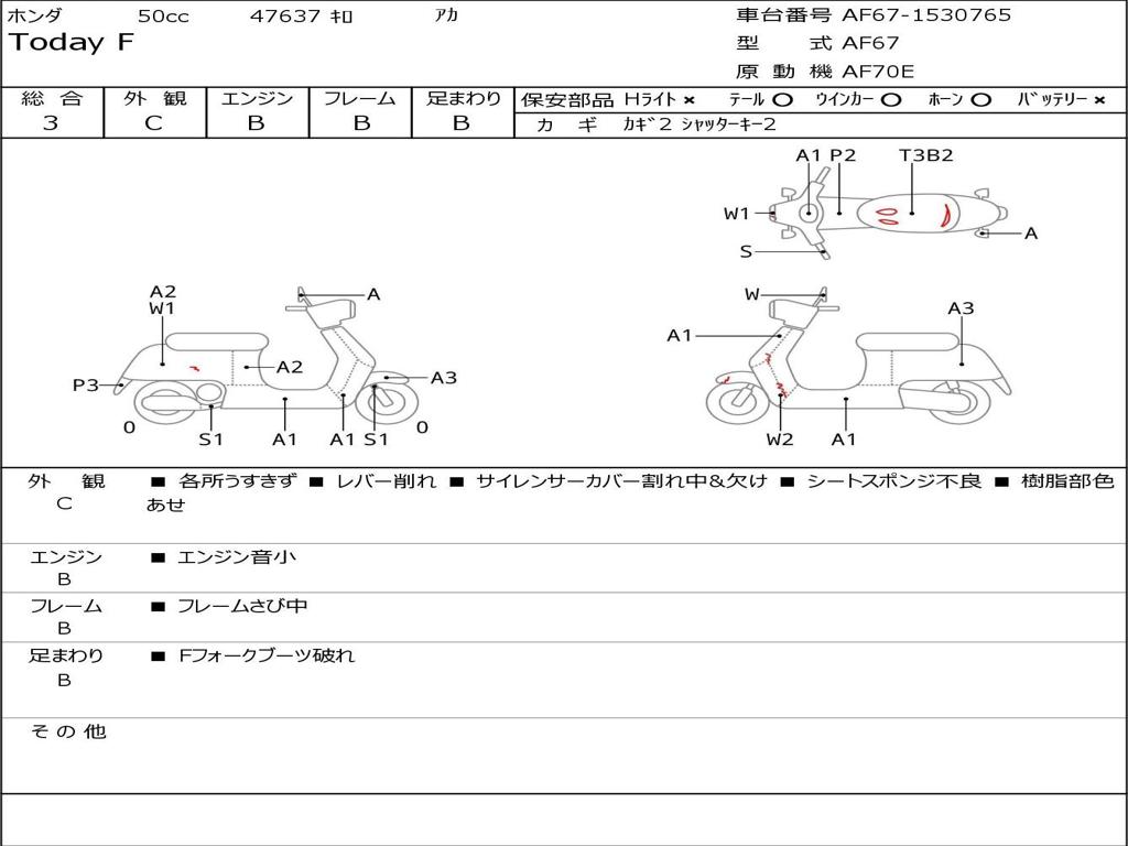 | Номер рамы / VIN | AF67-1530765 |
