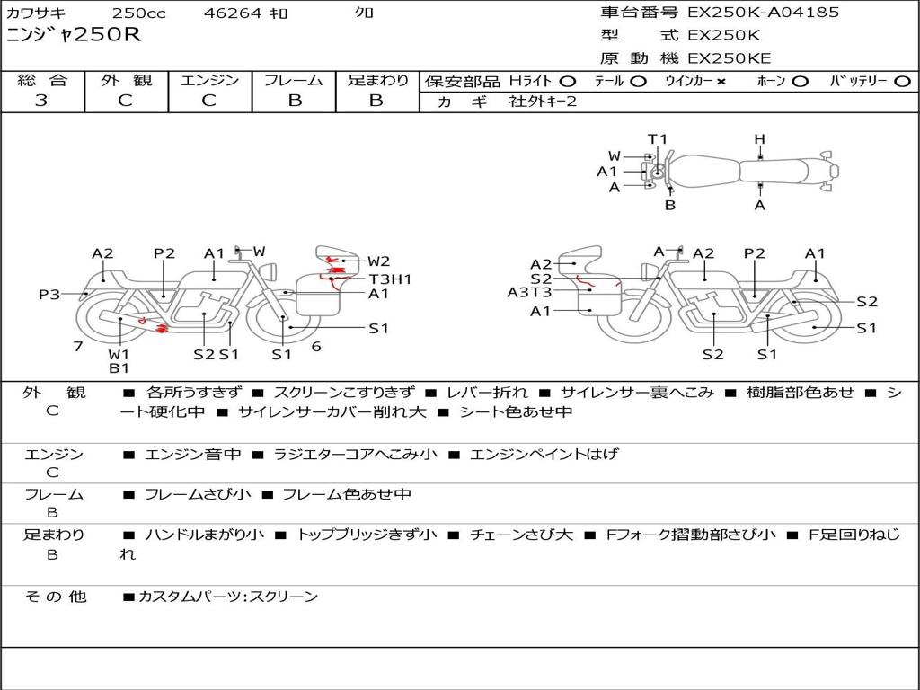 | Номер рамы / VIN | EX250K-A04185 |
