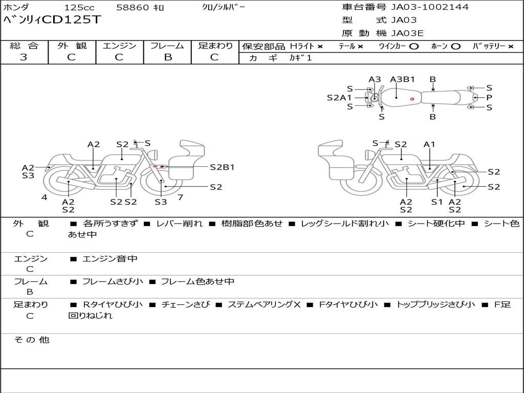 | Номер рамы / VIN | JA03-1002144 |