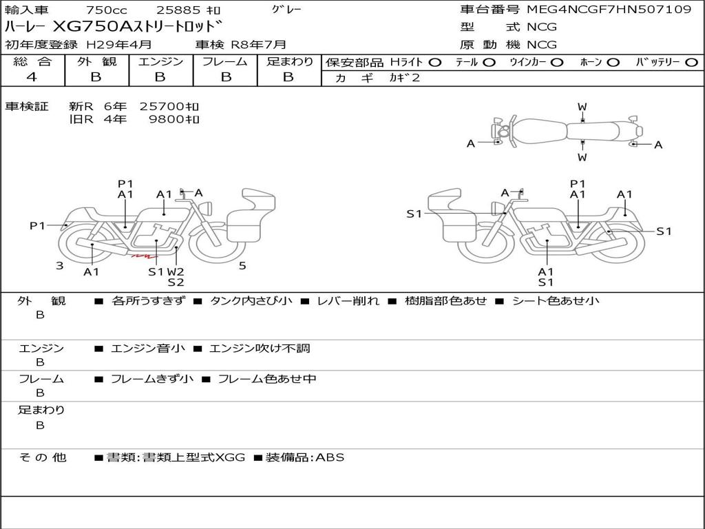 | Номер рамы / VIN | MEG4NCGF7HN507109 |