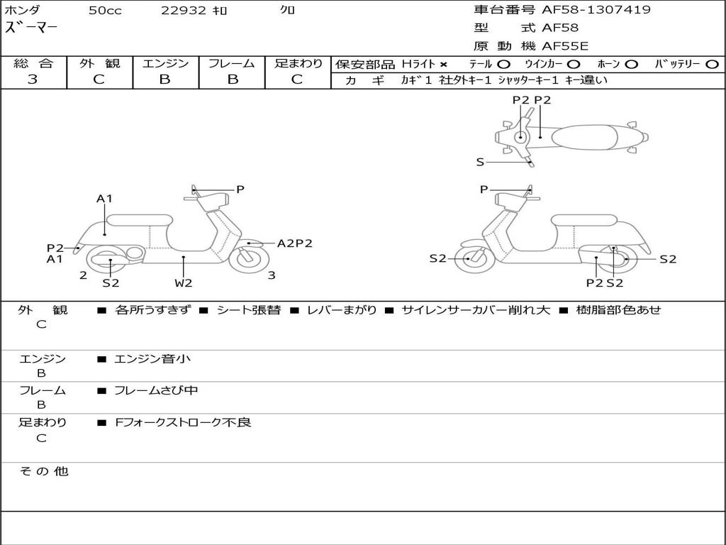 | Номер рамы / VIN | AF58-1307419 |