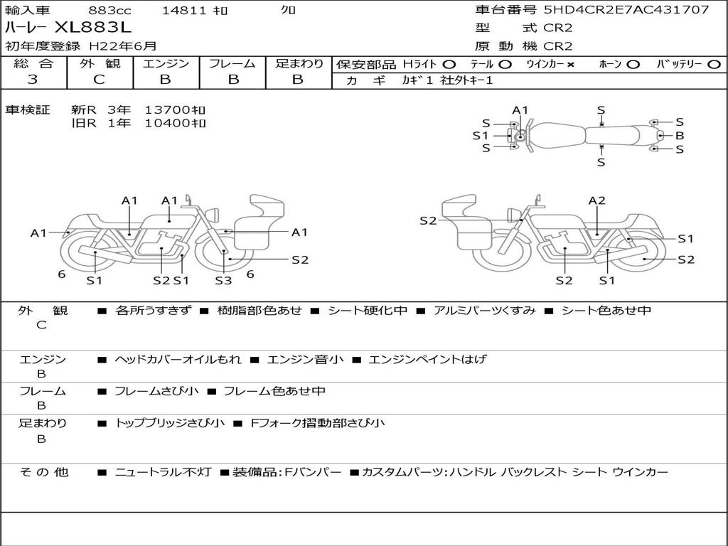 | Номер рамы / VIN | 5HD4CR2E7AC431707 |