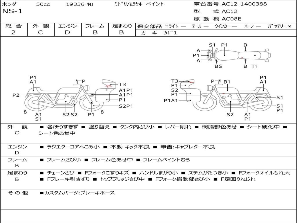 | Номер рамы / VIN | AC12-1400388 |