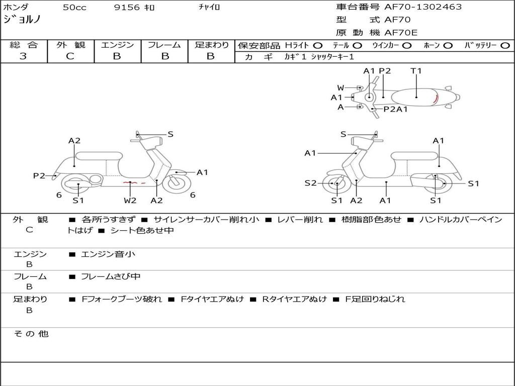 | Номер рамы / VIN | AF70-1302463 |