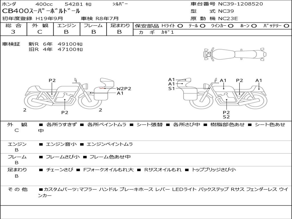 | Номер рамы / VIN | NC39-1208520 |