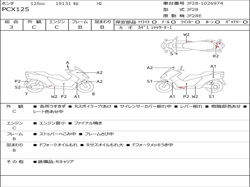 | Номер рамы / VIN | JF28-1026974 |