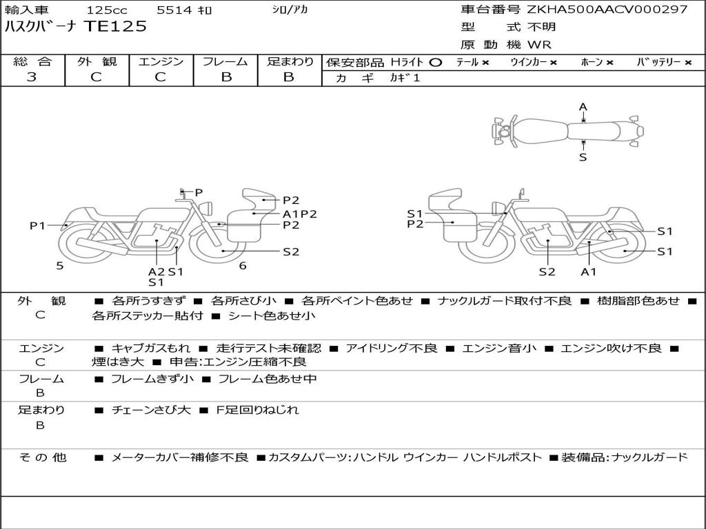 | Номер рамы / VIN | ZKHA500AACV000297 |