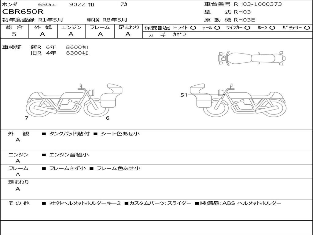 | Номер рамы / VIN | RH03-1000373 |