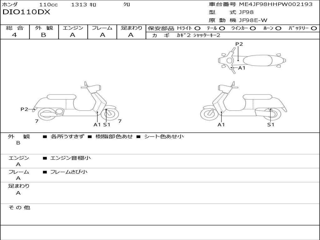| Номер рамы / VIN | ME4JF98HHPW002193 |