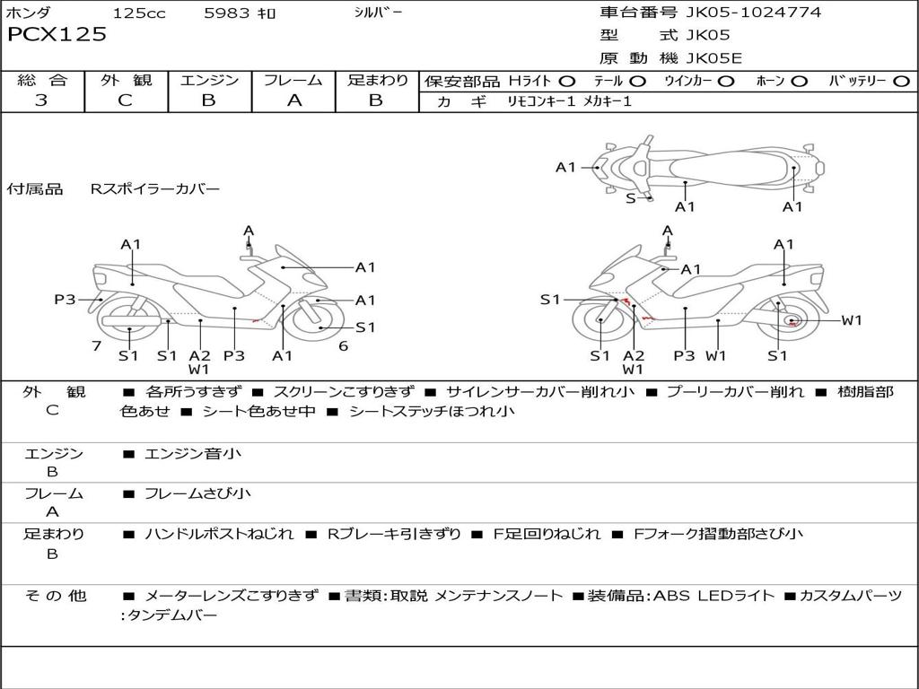 | Номер рамы / VIN | JK05-1024774 |