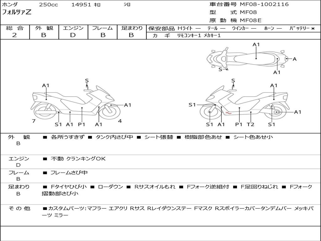| Номер рамы / VIN | MF08-1002116 |