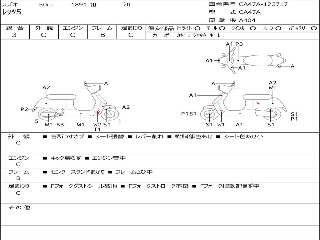 | Номер рамы / VIN | CA47A-123717 |