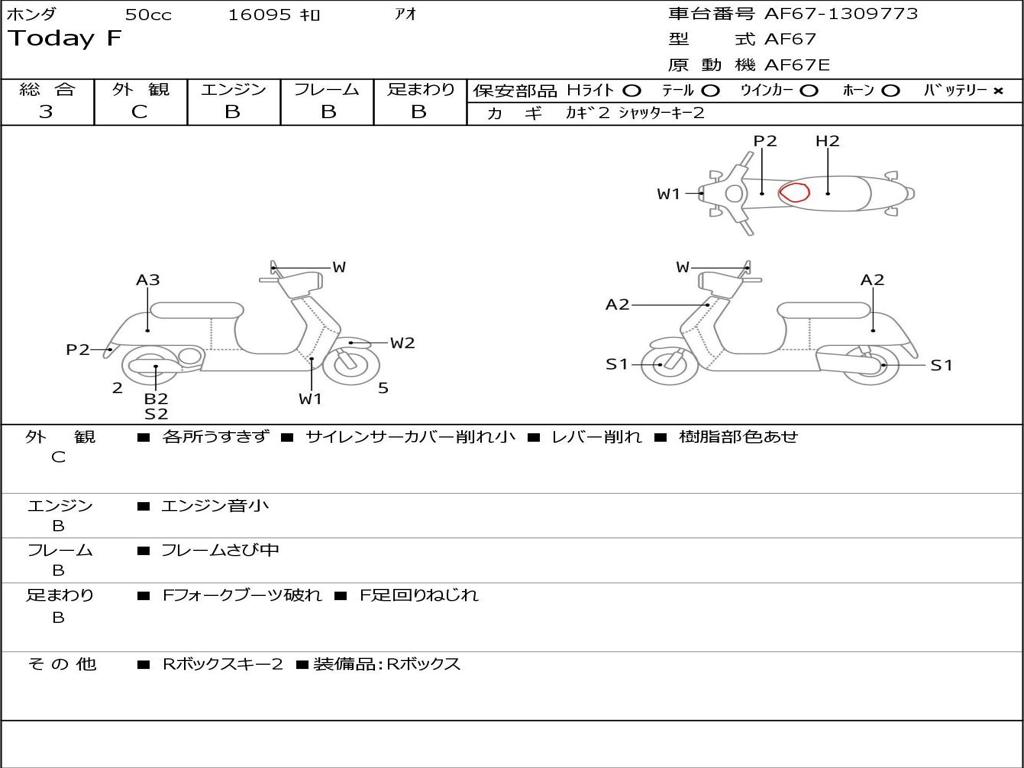 | Номер рамы / VIN | AF67-1309773 |