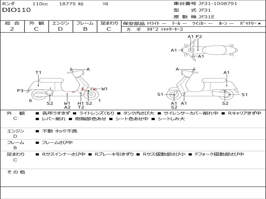 | Номер рамы / VIN | JF31-1008791 |