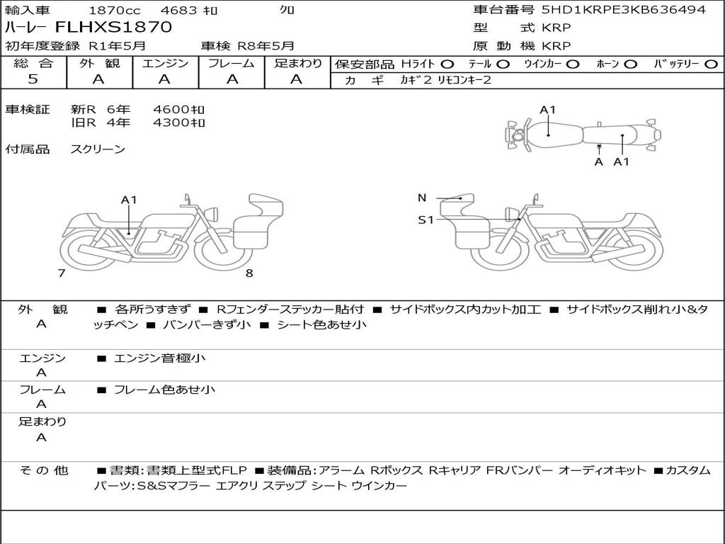 | Номер рамы / VIN | 5HD1KRPE3KB636494 |