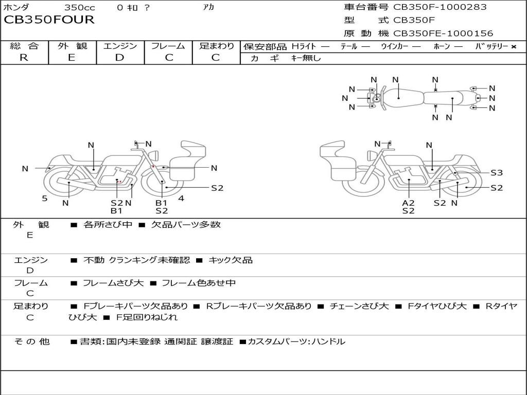 | Номер рамы / VIN | CB350F-1000283 |