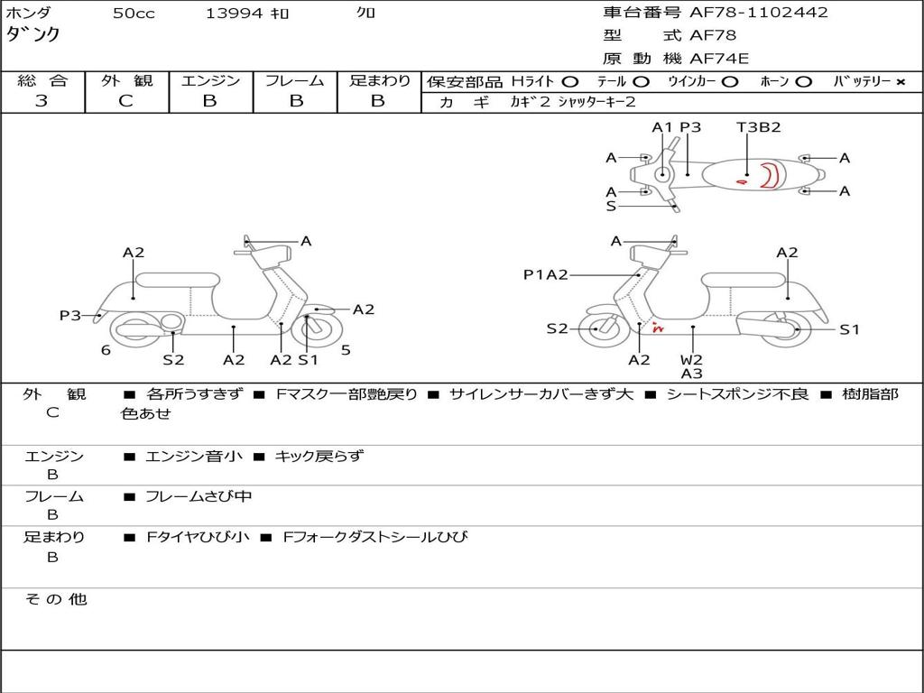 | Номер рамы / VIN | AF78-1102442 |