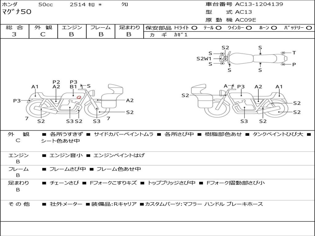 | Номер рамы / VIN | AC13-1204139 |