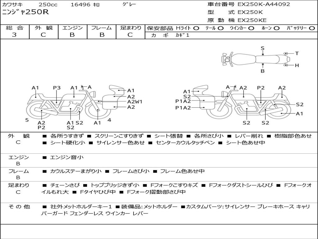 | Номер рамы / VIN | EX250K-A44092 |
