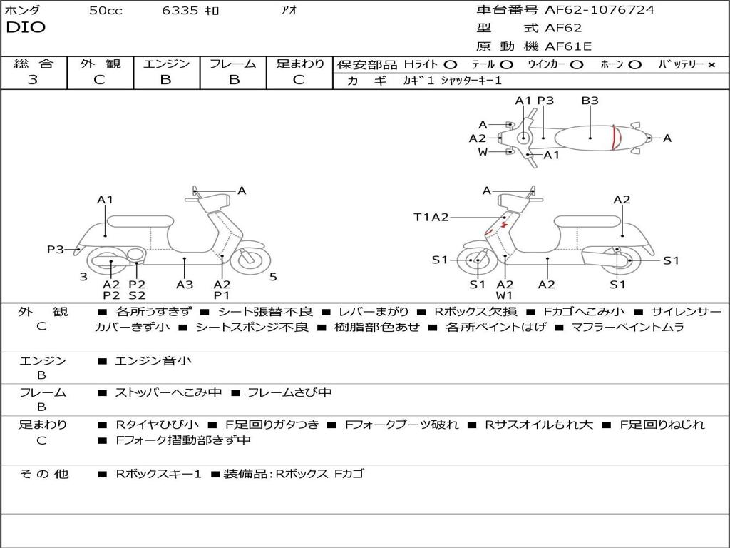 | Номер рамы / VIN | AF62-1076724 |