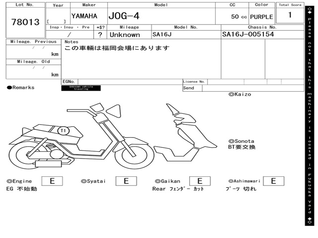 | Номер рамы / VIN | SA16J-005454 |