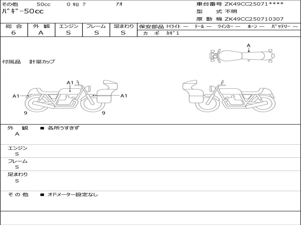 | Номер рамы / VIN | ZK49CC250710307 |