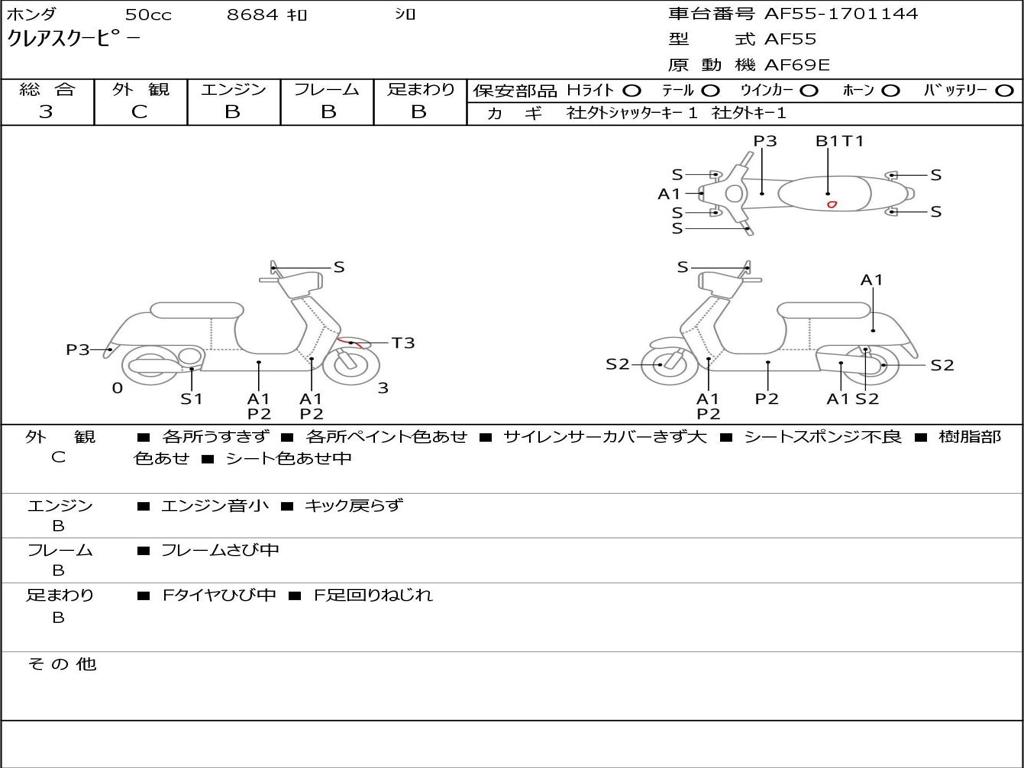 | Номер рамы / VIN | AF55-1701144 |