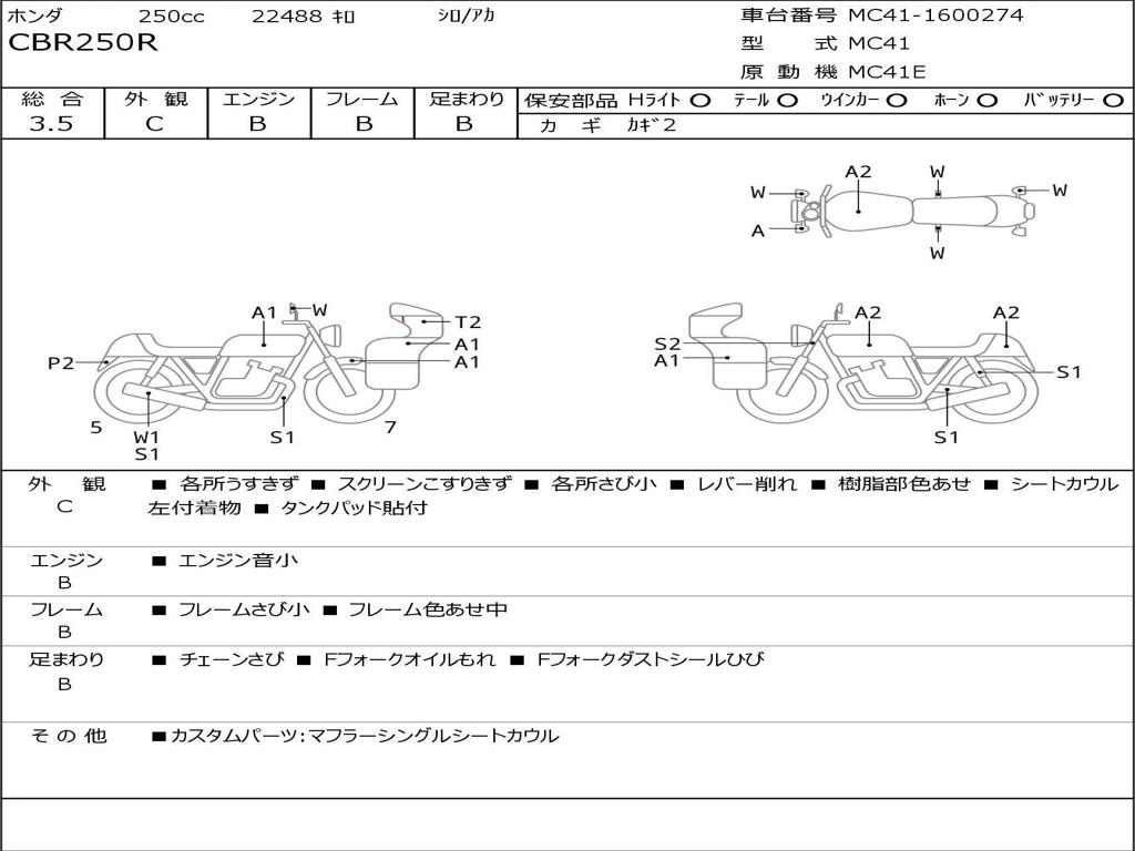 | Номер рамы / VIN | MC41-1600274 |