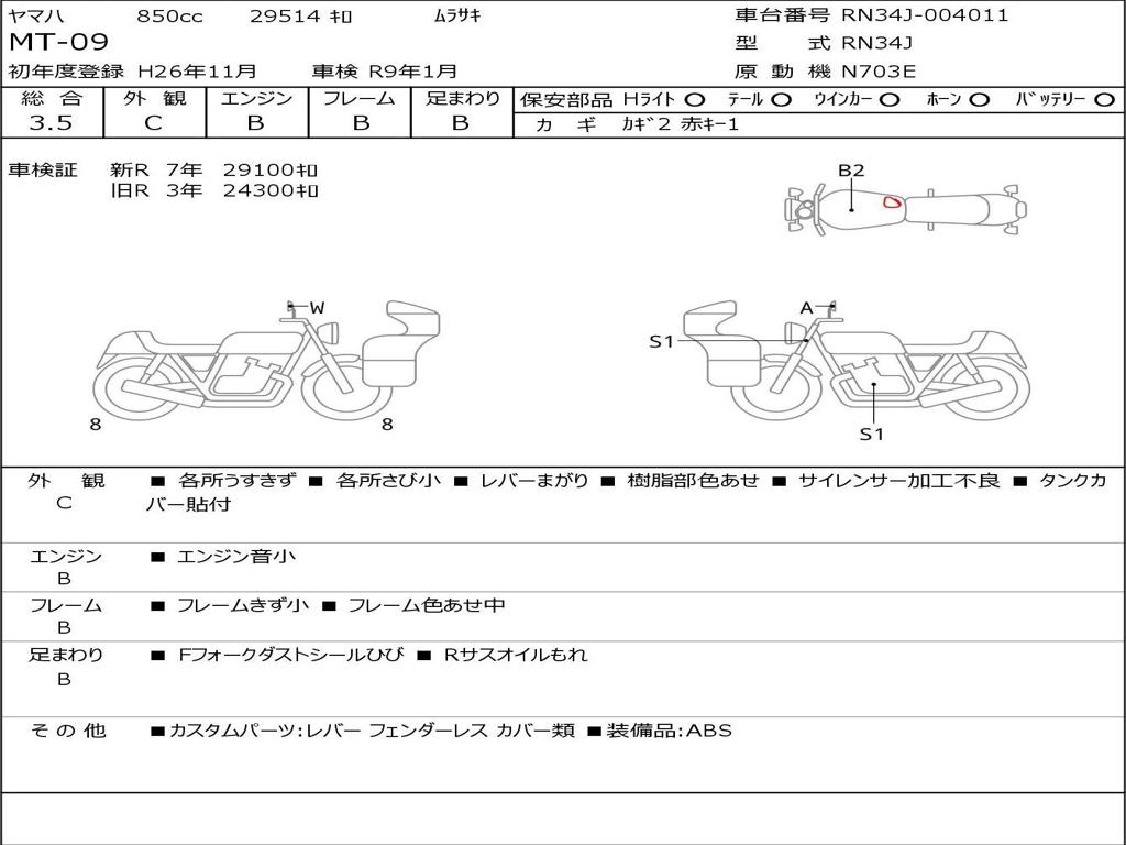 | Номер рамы / VIN | RN34J-004011 |