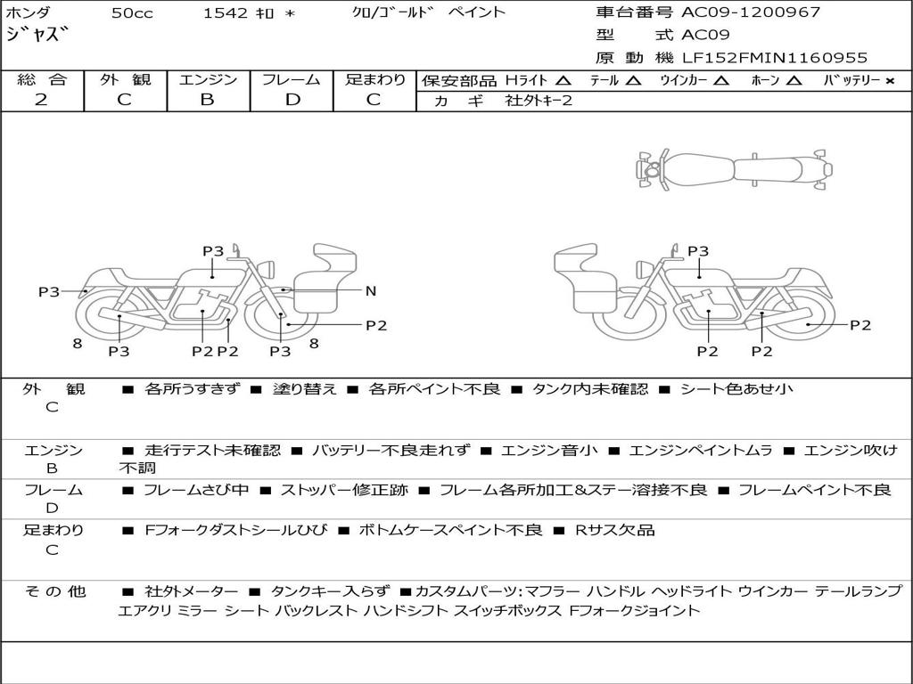 | Номер рамы / VIN | AC09-1200967 |