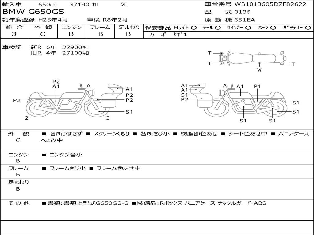 | Номер рамы / VIN | WB1013605DZF82622 |