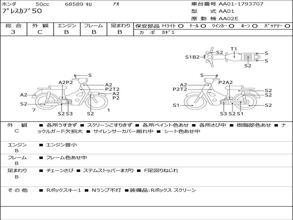 | Номер рамы / VIN | AA01-1793707 |