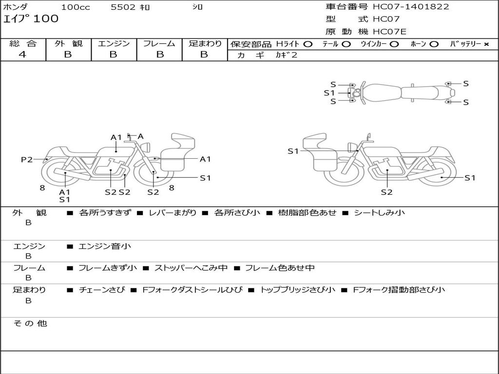 | Номер рамы / VIN | HC07-1401822 |