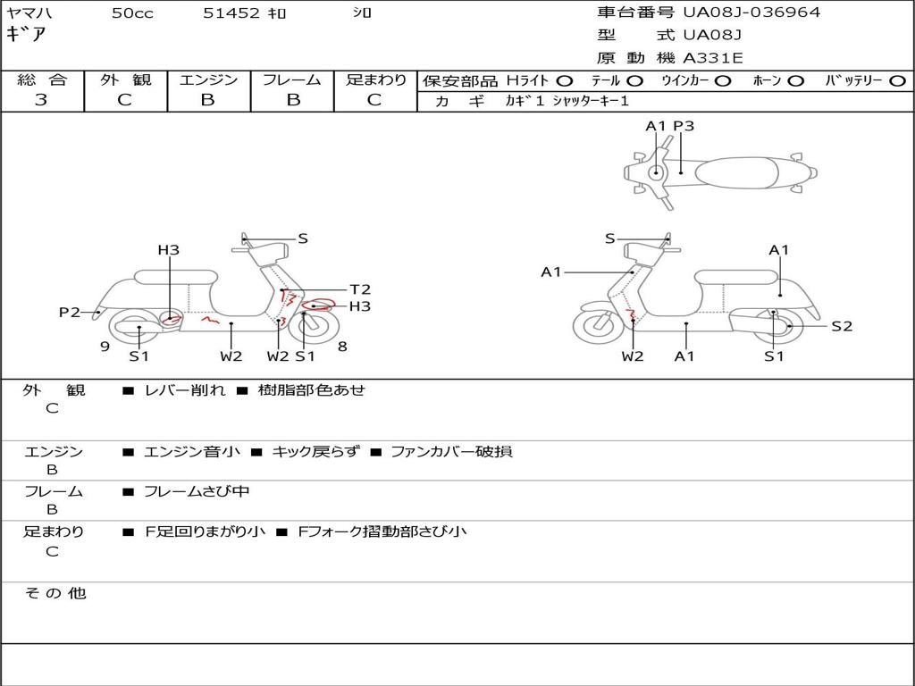 | Номер рамы / VIN | UA08J-036964 |