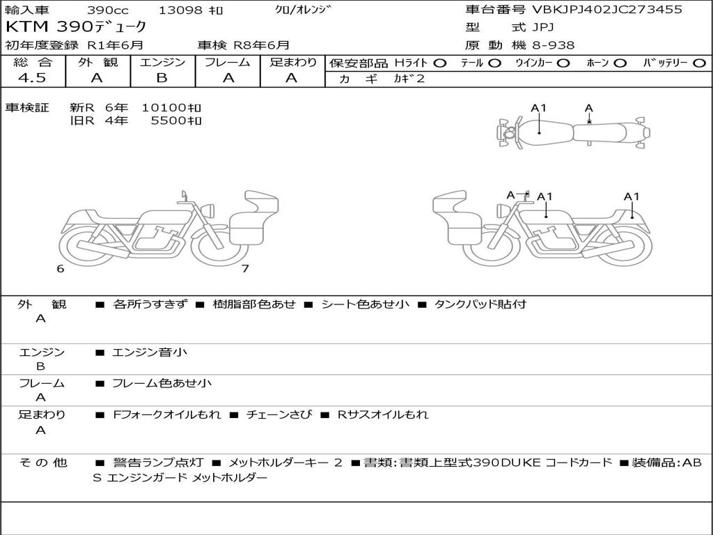 | Номер рамы / VIN | VBKJPJ402JC273455 |