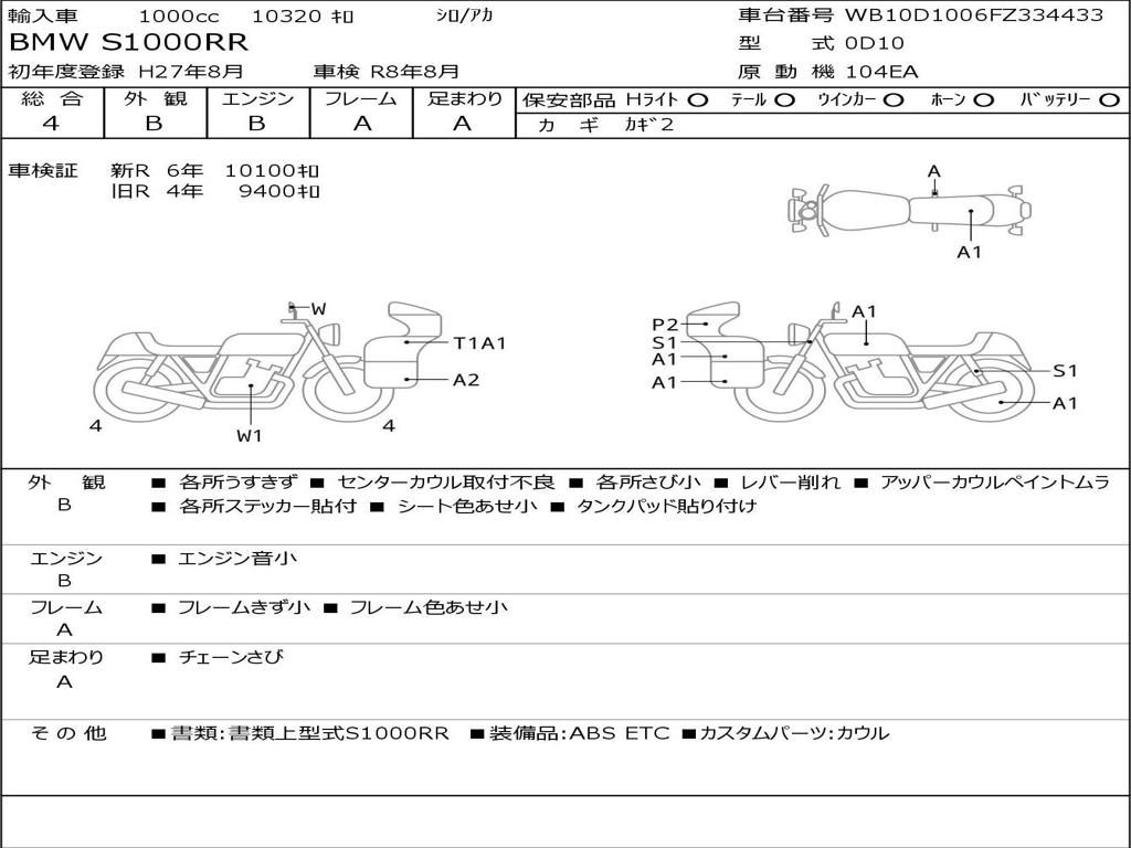 | Номер рамы / VIN | WB10D1006FZ334433 |