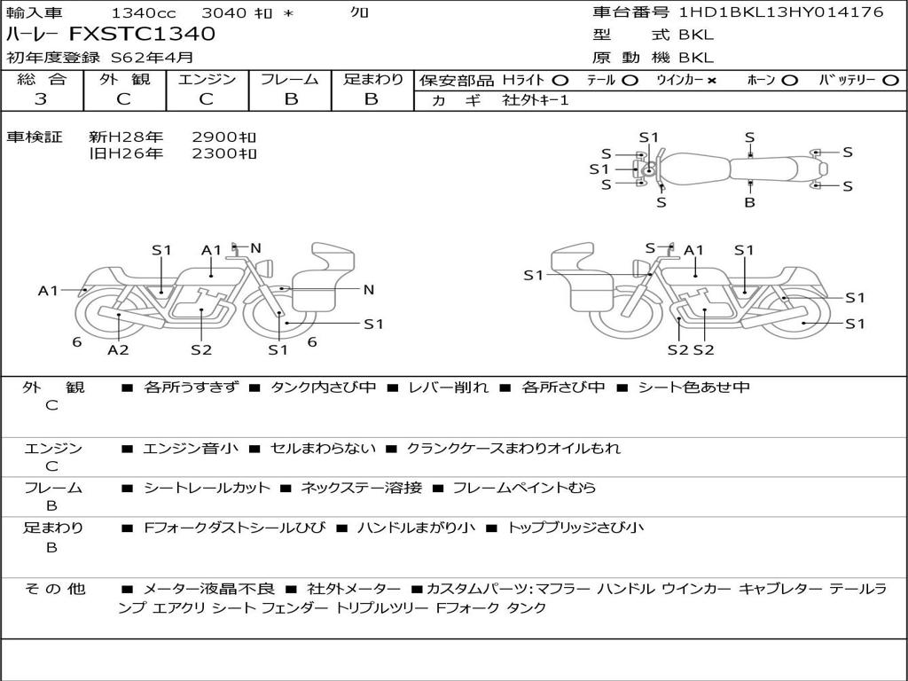 | Номер рамы / VIN | 1HD1BKL13HY014176 |